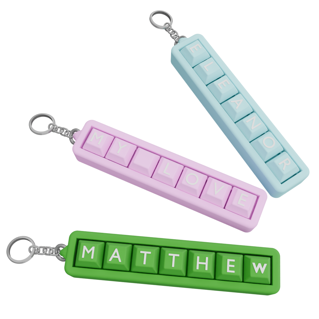 Pack of 5 Personalized Keycap Keychains, 1 Button Each